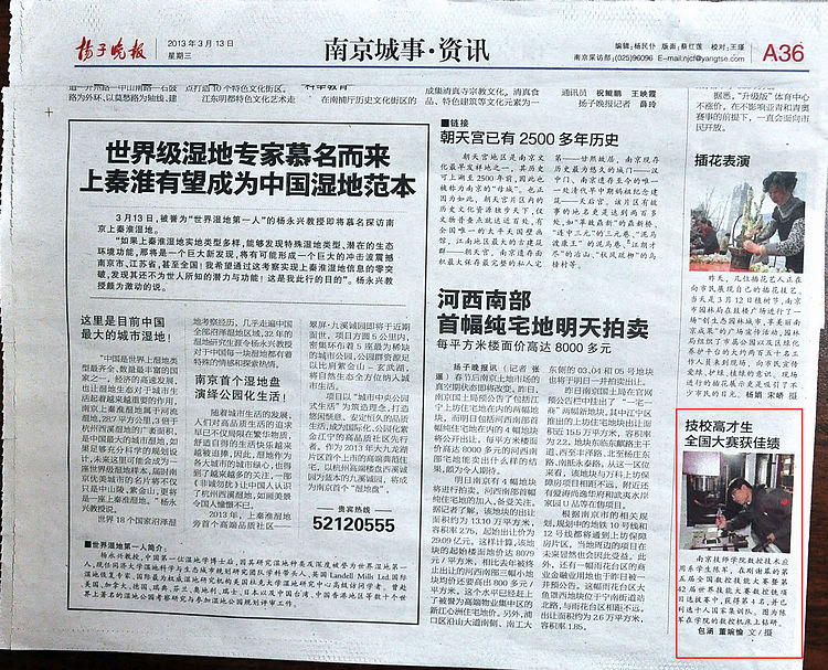 《扬子晚报》A36版-《技校高才生全国大赛获佳绩》