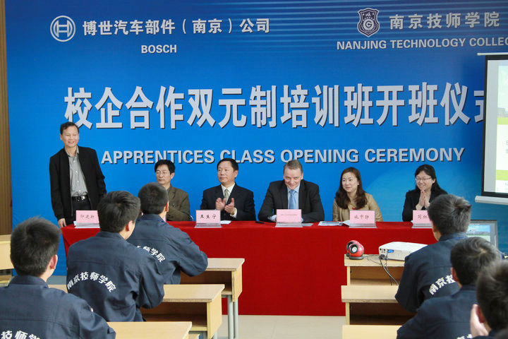 博世公司是世界领先的技术及服务供应商,500强的德国企业,100多年来以其卓越的技术、产品和服务享誉世界。其学徒制(暨双元制)是有着悠久的历史和成熟的技能人才培养模式。此次“博世双元制班”有助于实现校企双方人才培养体系的有机融合,在为博世公司培养优秀的专业技术工人的同时,又促进学院办学能力的提升,实现校企双方共赢的良好局面。