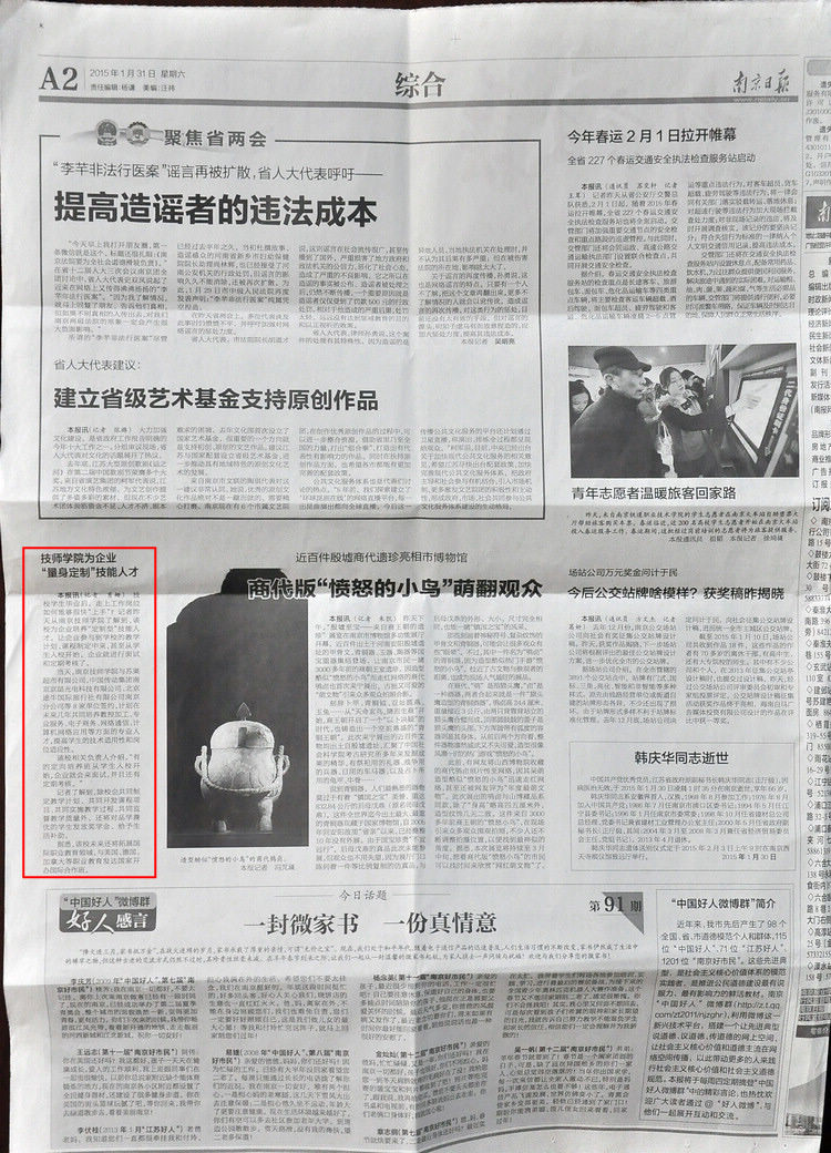 《南京日报》A2-技师学院为企业“量身定制”技能人才