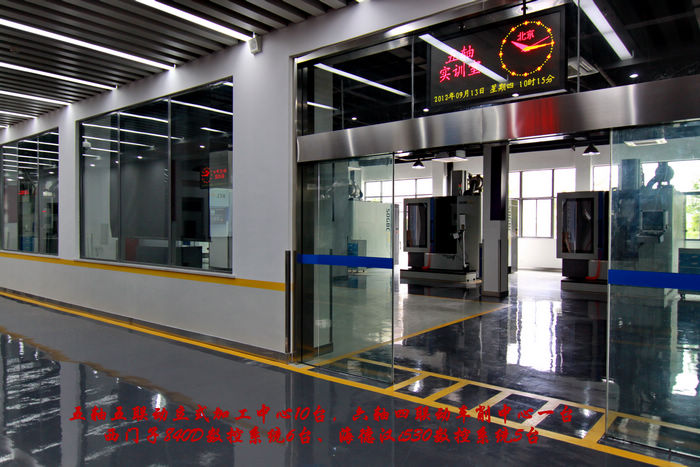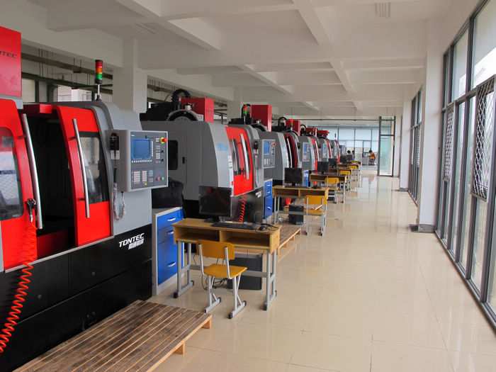 2011年11月对原有数控实训场地进行了全面改造,所有设备通过政府公开招标采购,于2012年7月完成一期设备安装、调试,并投入使用。二期高档设备的安装调试于2013年1月完成,并已投入使用。数控实训中心在原有条件的基础上新建整合5个实训基地,配仿真教学实训室8个。