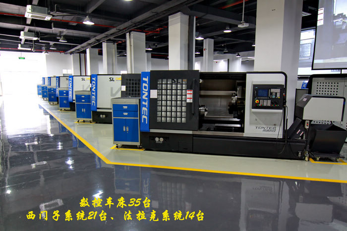 数控车工实训基地分数控车床实训区和车削中心实训区。配置企业生产型数控车床35台、车削中心10台等实习实训设备。