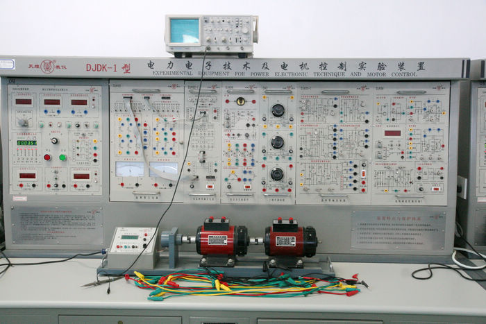⑶设电力电子实训室1个,配置电力电子实习装置24台,主要用于电力电子排故实习训练。