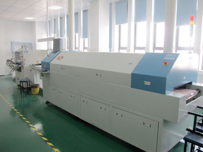 ⑵数码贴片焊实训室1间,主要配置有半自动高精密钢网印刷机1台,高速贴片机1台,环保无铅热风回流焊1台。