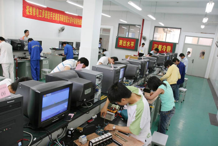 电气工程系实训基地,分为五个实训中心,即通用电工实训中心、电气自动化实训中心、通用电子实训中心、电子工艺与生产实训中心、光电技术实训中心。投入的教学设备设施与当前技术接轨,在技工院校系统具有超前性。重点投资建设的实训室,做到“人无我有,人有我精”,适用于教学,更适用于社会培训所需。
