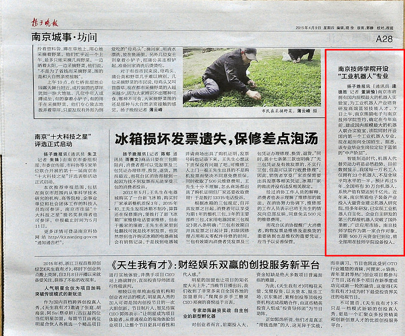 《扬子晚报》A28—米兰官方网站开设“工业机器人”专业