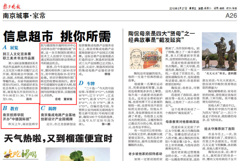 《扬子晚报》A26版—米兰官方网站开办“中德国际班”
