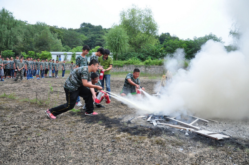 随后全体新生进行了消防灭火演练,保卫处李老师向同学们讲解了灭火器使用知识,并进行了灭火器等消防器材的现场演示。随后,同学们在教官的指导下进行了实战演练。整个消防灭火演练过程紧张规范有序。