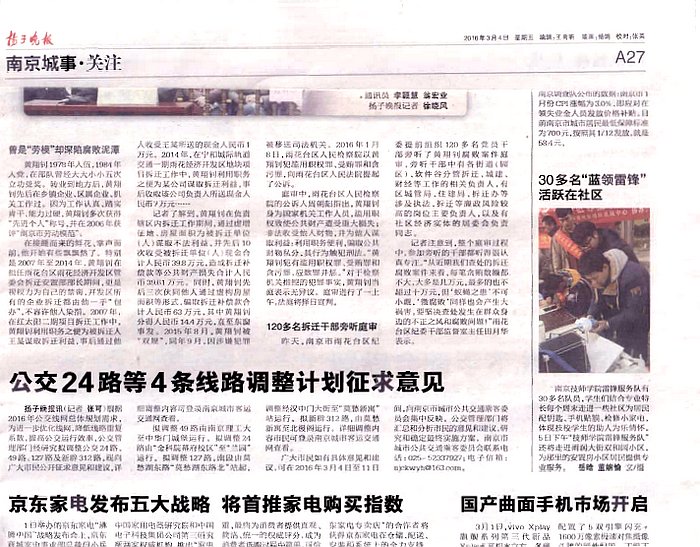 《扬子晚报》A27——30多名“蓝领雷锋”活跃在社区