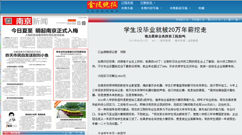 《金陵晚报》—B01学生没毕业就被20万年薪挖走