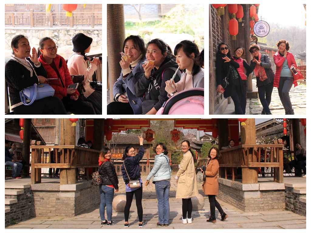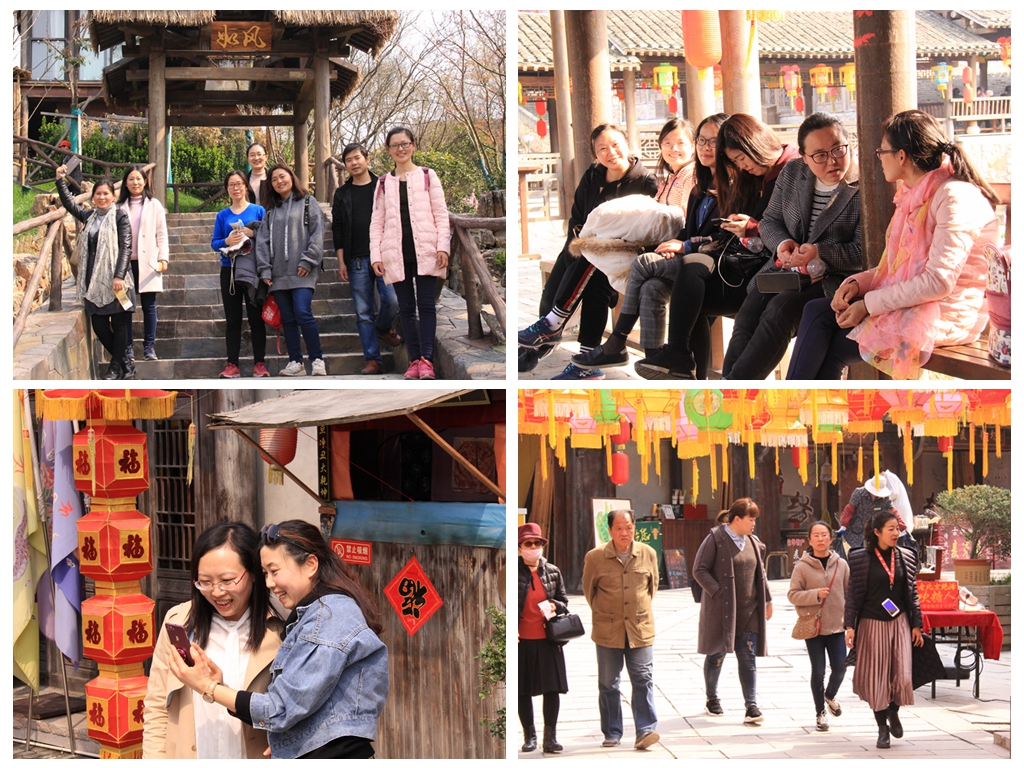 阳春三月,春暖花开。3月23日下午,院工会组织了三八妇女节活动——全体女教工游览宝华山森林公园山下的“千华古村”,我院女教工积极参加此次活动。享有“花山”美誉的宝华山国家森林公园青山绿水,“千华古村”作为仿明清古镇,展现出中国明清时期的建筑特色和市井民俗。前来探寻古迹、感受春意的游人络绎不绝。我院教工或是俩人结伴、或是三五成群,在欢声笑语中徜徉在韵味无穷的古镇街巷中,放松身心,沐浴春风与暖阳的交织,感受历史与现实的融合。