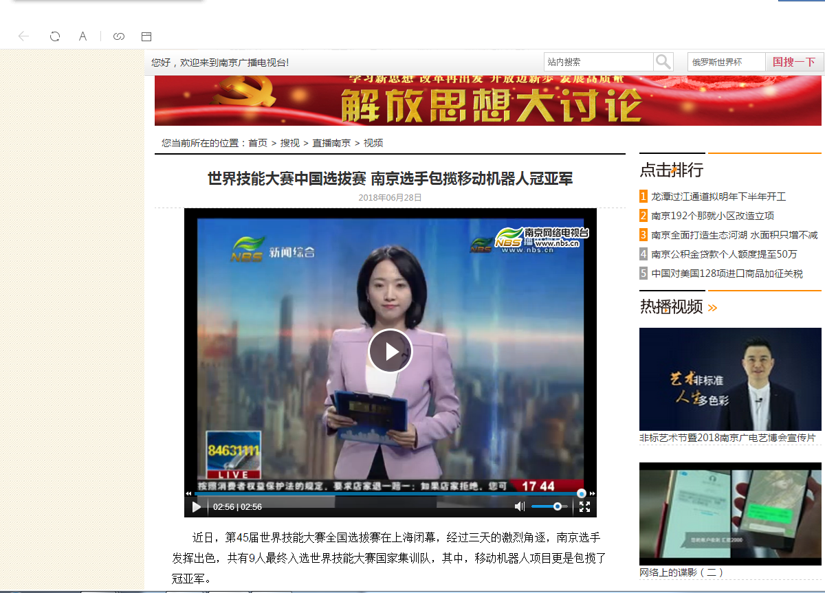 《南京广播电视台》-世界技能大赛中国选拔赛 南京选手包揽移动机器人冠亚军