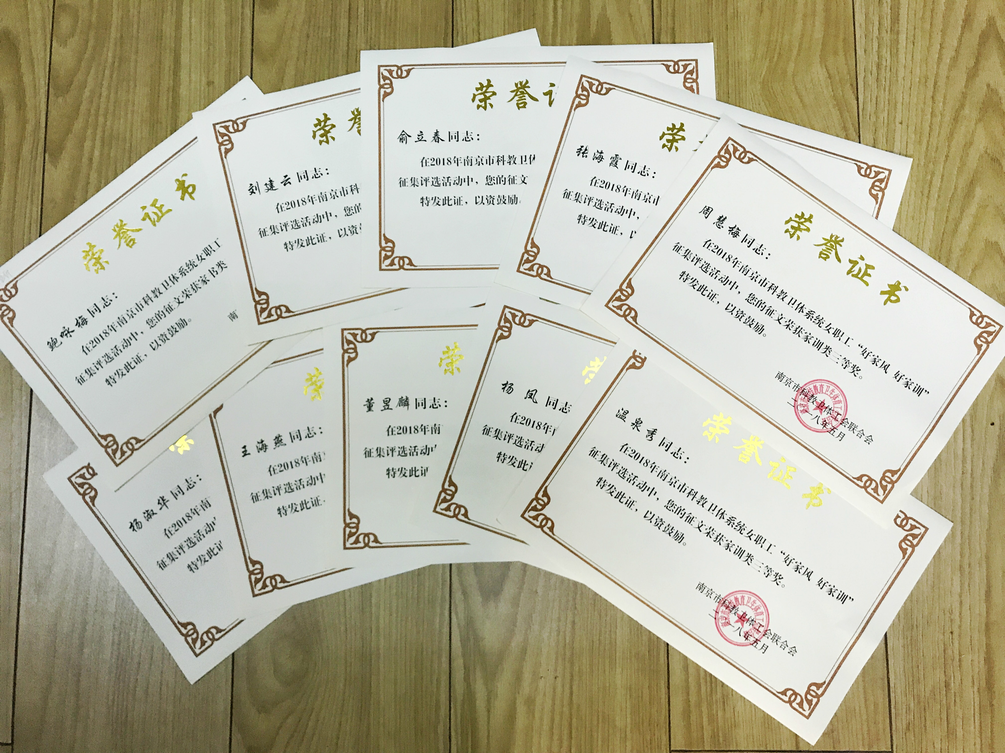 我院女教工在南京市“好家书家训家风”评比活动中喜获嘉奖