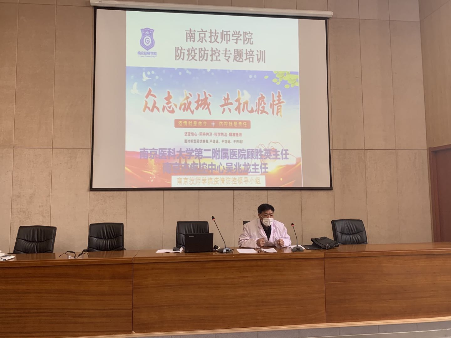 3月17日开展的第一场2020年春季疫情防控知识培训,由南京市疾控中心吴兆龙主任、南医大二附院顾胜英主任主讲,副院长王杭贵、赵杰,中层干部,校园内社会单位代表近70人参加了本场培训。3月24日开展第二场2020年春季疫情防控知识培训,培训由南医大二附院顾胜英主任主讲,副院长朱胜强、在宁班主任、教职工代表近60人参加了本场培训。
