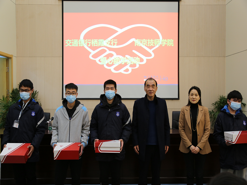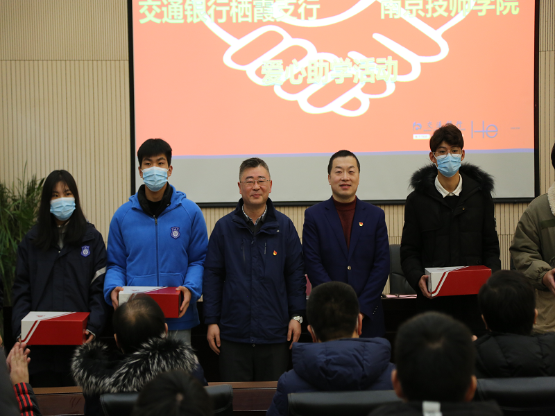 2020年12月24日上午,交通银行栖霞支行吕莹副行长、王道鸿副行长一行五人莅临我院,参加爱心助学活动。米兰官方网站侯放院长、金卫卫副院长和财务处、学工处、各系教工代表,以及获得爱心帮助的20名学生参加了本次助学活动。