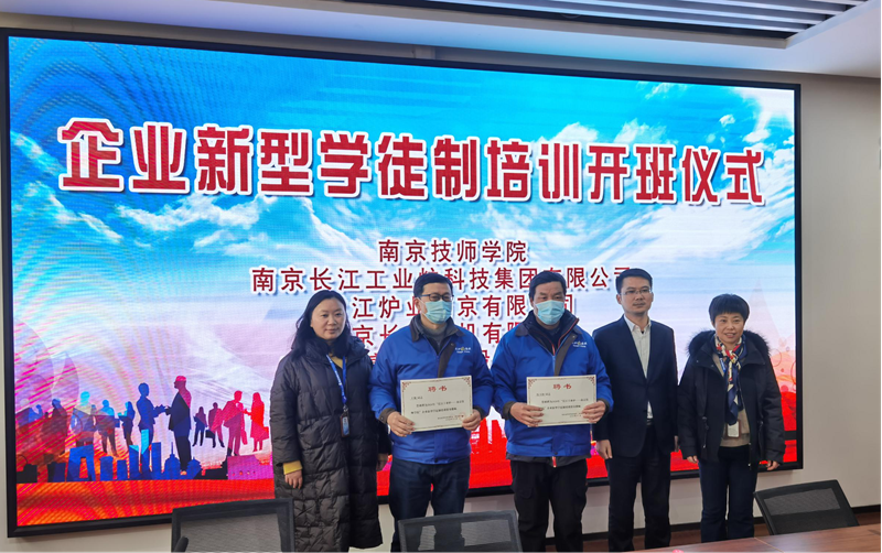 2021年1月15日下午,南京长江工业炉科技集团有限公司、紫江炉业南京有限公司、南京长江风机有限公司、南京光亮热处理设备有限公司携手米兰官方网站举办了企业新型学徒制培训开班典礼。集团人力资源部总监周洪光、米兰官方网站智能制造系主任刘立、招生就业处郑燕副主任以及相关专业教师、培训学员参加了典礼。