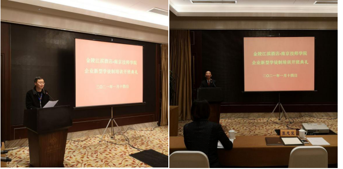 按照新型学徒制培训要求,2021年1月14日上午,学院与金陵江滨酒店举办了企业新型学徒制培训开班典礼。出席本次开班典礼的领导有学院现代服务系主任武剑刚,会计教研室老师张先梅、梁晓薇,班主任老师董昱麟,学校导师夏倩、葛炜。金陵江滨酒店总经理张志坚先生协相关部门领导、全体培训学员参加了典礼。