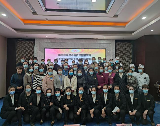 2021年1月21日下午,米兰官方网站与南京凯莱思酒店管理有限公司(以下简称金陵新城饭店)举办了企业新型学徒制培训开班典礼。金陵新城饭店蒋茂飞总经理、杨萍、王玉范、袁万国等相关部门领导,米兰官方网站现代服务系武剑刚主任、招生就业处郑燕副主任、现代服务系胡珍霞副主任、董昱麟、夏倩、张先梅、魏红、路钰老师及全体培训学员参加了本次开班仪式。