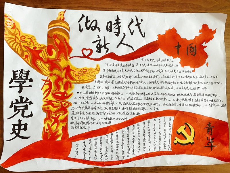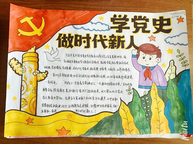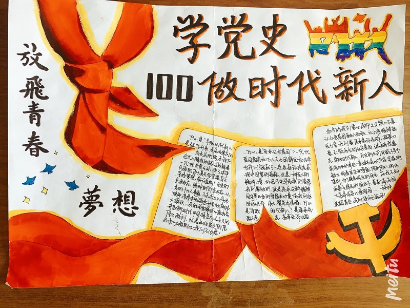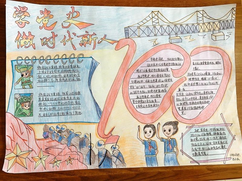 二是举办“学党史,做时代新人”手抄报比赛活动。同学们利用课余时间查阅资料,精心编排设计,制作一幅幅紧扣主题、美观大方、富有创意的手抄报,表达对中国共产党和伟大祖国的满腔热爱,抒发在中国共产党的坚强领导下,为实现中华民族伟大复兴的奋斗目标而刻苦学习、报效祖国、服务人民的壮志豪情。
