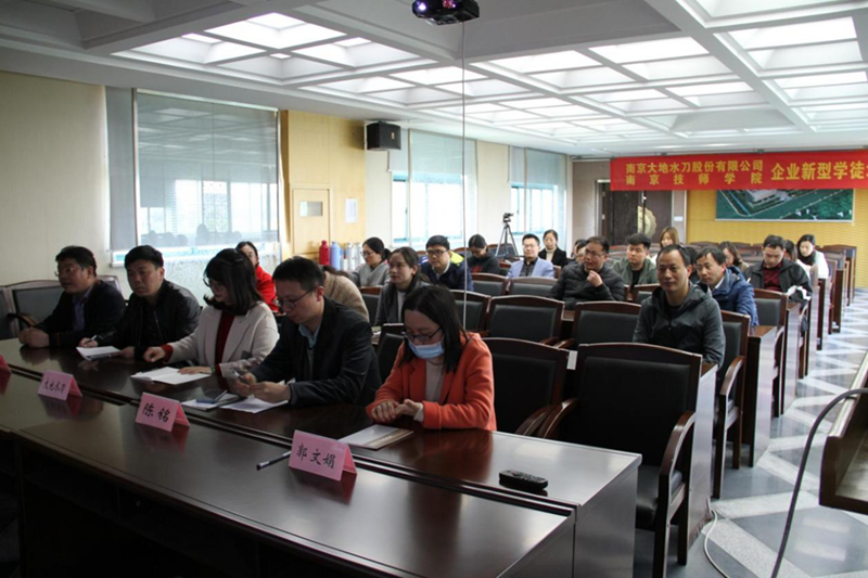 典礼由南京大地水刀股份有限公司经理孔丽丽主持,公司江叶舟经理和学院陈铭副主任做开班致辞,随后双方负责人为导师代表发放了聘书,学员代表和导师代表分别进行了发言,全体参加开班典礼的领导和学员合影留念。典礼结束后,学员进行了《职业道德》课程培训。