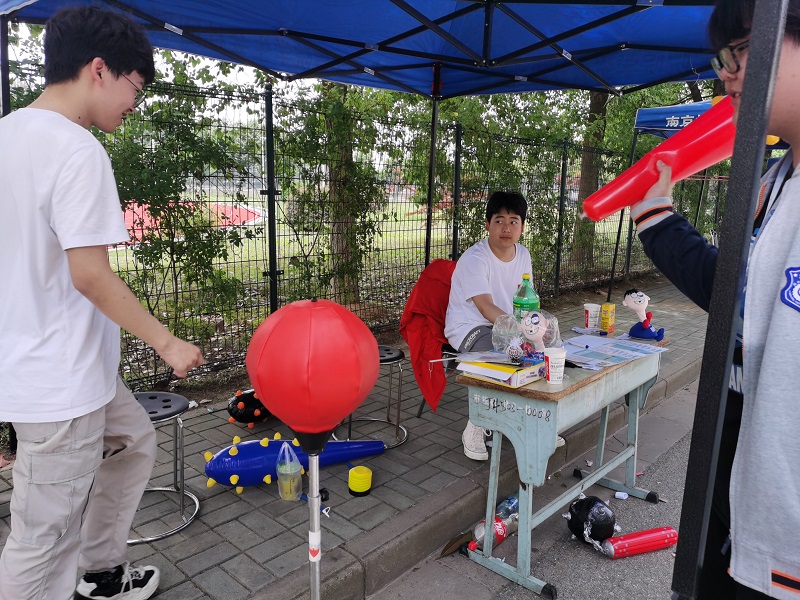此次活动分为四个环节:一、“爱的抱抱”温暖校园行活动;二、心理游戏体验区,有沙包娱乐区、心灵治愈区、心理宣泄区、心理绘画区、套圈娱乐区;三、抽奖环节;四、心理咨询区。