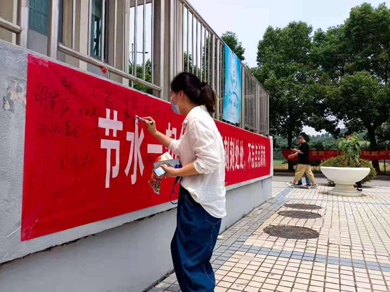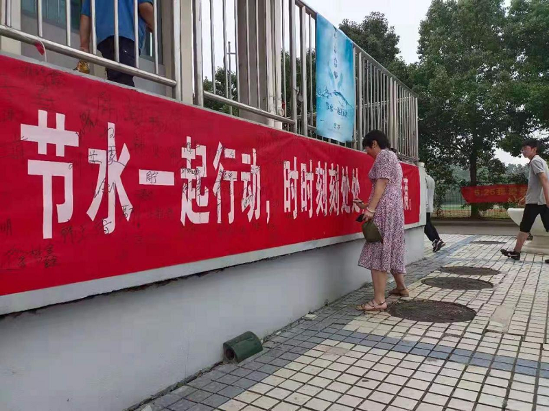 活动初期,我院号召全体师生提高节水意识,在宿舍、食堂、教学楼等众多地方也都是有张贴关于节水的海报和标语。在活动当日,众多学生在 “节水万人签名”活动的横幅上签字,留下了大家圣神的一笔,一个个名字是一个个庄严的承诺——节水一起行动,时时刻刻处处,不忘点点滴滴。我们的老师和学生干部更是带头踊跃的参加此次活动。