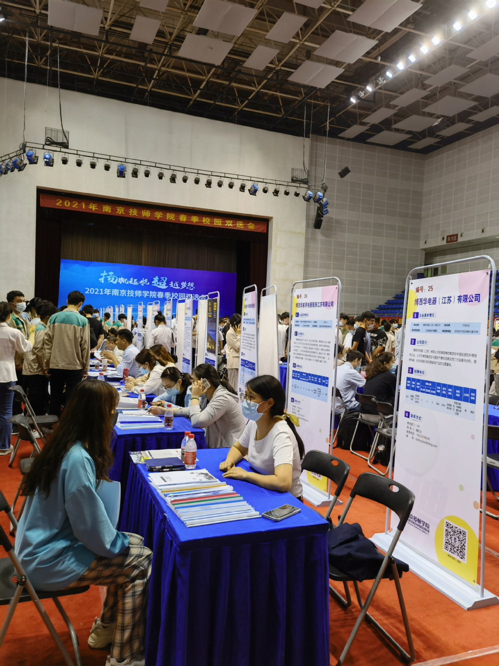 在5月28日举办的线下校园双选会上,前来学院现场参会的实习企业有76家,现场提供实习岗位4800余个, 1035名今年需下厂实习的学生准时入场,累计投递简历1万余次。会后我院实习生、毕业生还可登录学院实习就业系统,继续参加线上双选会,45家企业携带2000余个职位将在线上开展双选。
