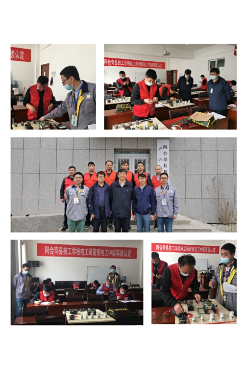 4月13日我院两名考评员对阿合奇县技工学校6名参训教师进行电工中级等级认定,南京市鉴定指导中心秦建宝、朱晨主任对我院电工技能等级认定现场督导。6名参训教师均顺利通过电工中级理论和技能考核。