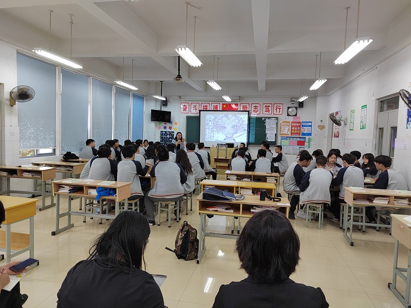 9月27日,张丽老师在示范课上带领同学们开展“自我意识探索活动”。在教学流程上,依循“暖身活动—自我认识—生存选择—目标确立”四个环节进行授课。首先张老师用“萝卜蹲”小游戏调动学生参与的积极性,接着通过完成“20个我”让学生全面反思自我,在“生存选择”环节帮助学生形成正确的价值观,最后让学生确立自己的人生目标,合理规划自己的校园生活。整个教学过程环环相扣,衔接流畅,课堂节奏有条不紊,可以说是“润物细无声”的温暖人心的心理课堂。