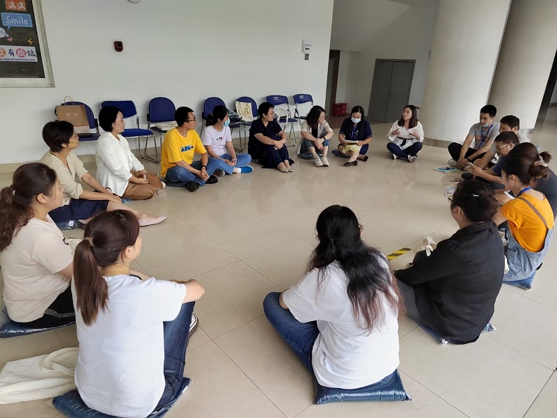 9月16日,专职心理老师王雨静带领大家开展团队建设,以“大风吹”小游戏作为暖身活动,活跃气氛;接着以“找亲人”的方式进行分组,开展组内成员交流,通过“串糖葫芦串”的方式进一步熟悉同学并加深记忆;最后小组合作,选举组长、形成组名、组徽,完成“报纸创意赛”。活动层层递进,教会老师如何带领学生互相认识和了解。