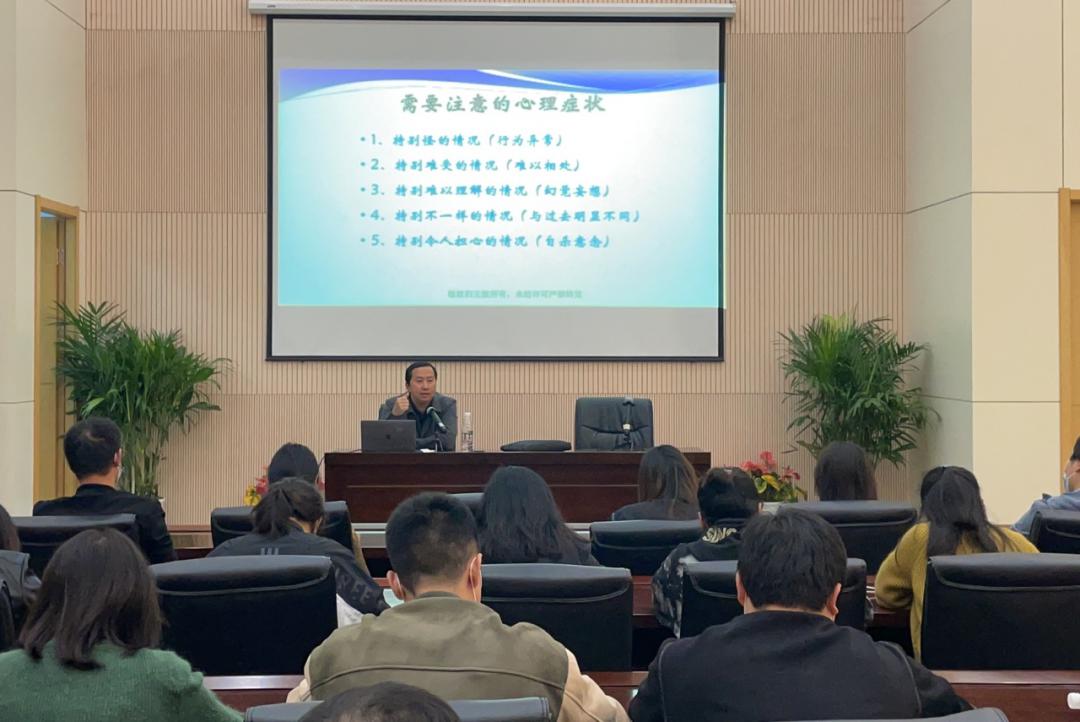 为切实推进学校心理健康教育工作,提升广大师生身心健康水平、发展教师心理危机事件的干预和预防能力、促进学生身心健康发展1110日下午,院邀请南京中医药大学的王挺教授开展心理危机干预专题讲座。学工处组织兼职心理教师、各系部学管员和部分班主任参训。