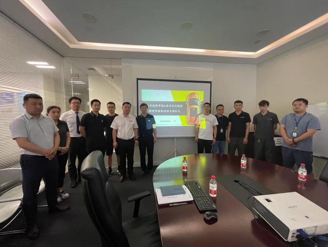 为进一步提升员工综合技能水平,加快企业高技能人才梯队建设,加快适应产业发展新需求的企业后备技能人才培养,助推企业高质量发展,2022年8月26日,我院汽车技术系在永达路捷汽车4S店举行了企业新型学徒制培训班的开班仪式。