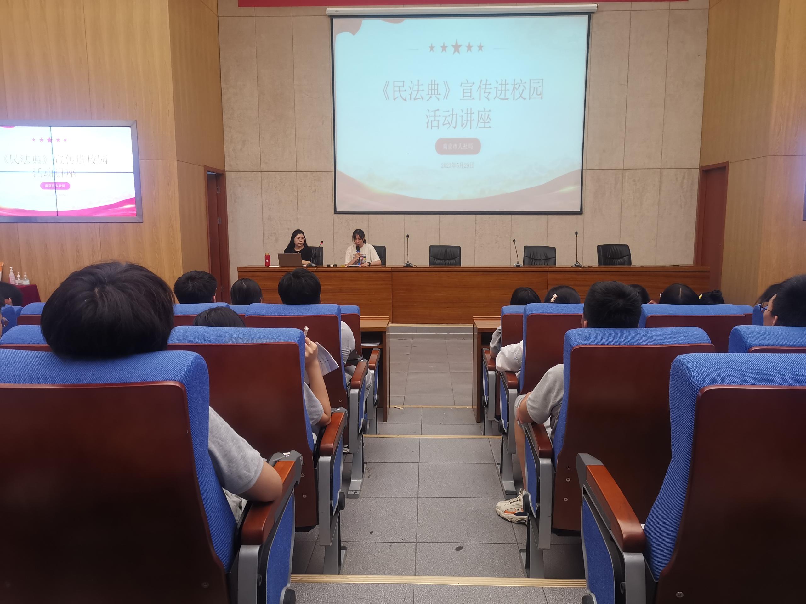 为广泛开展民法典宣传教育活动,促进民法典入脑入心,营造学生尊法学法守法用法的良好氛围,5月29日下午,南京市人社局在我院开展《中华人民共和国民法典》宣传进校园活动,戎霞律师来到我院,为学生讲解《中华人民共和国民法典》相关知识。