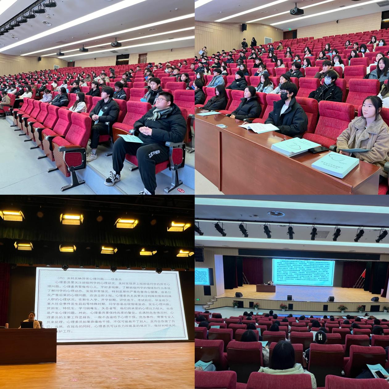 为帮助各班级心理委员明确定位、理清职责,在班级层面更好地开展心理健康工作,12月27日下午,我院学生工作处李佳老师在综合教学楼报告厅开展了主题为“托起生命的希望——学生心理危机应对与生命成长”的心理健康培训,我院各班级心理委员参加培训。