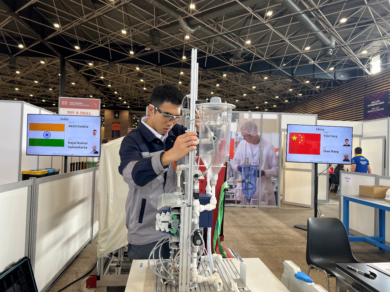 杨艺杰在第47届世界技能大赛水处理技术项目现场