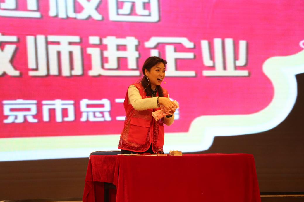 活动中,来自交通银行江苏省分行营运与渠道管理部、南京栖霞支行的讲师们详尽阐述了数字人民币、金融诈骗识别与应对、非法集资防范等方面知识,并与在场师生员工进行了热烈的互动交流。最后,中国人民银行江苏省分行“陶萍劳模工匠创新工作室”的专家陶萍手持人民币,现场展示了花样点钞、蒙眼识别假币的精湛技艺,获得了阵阵掌声,将现场气氛推向了高潮。