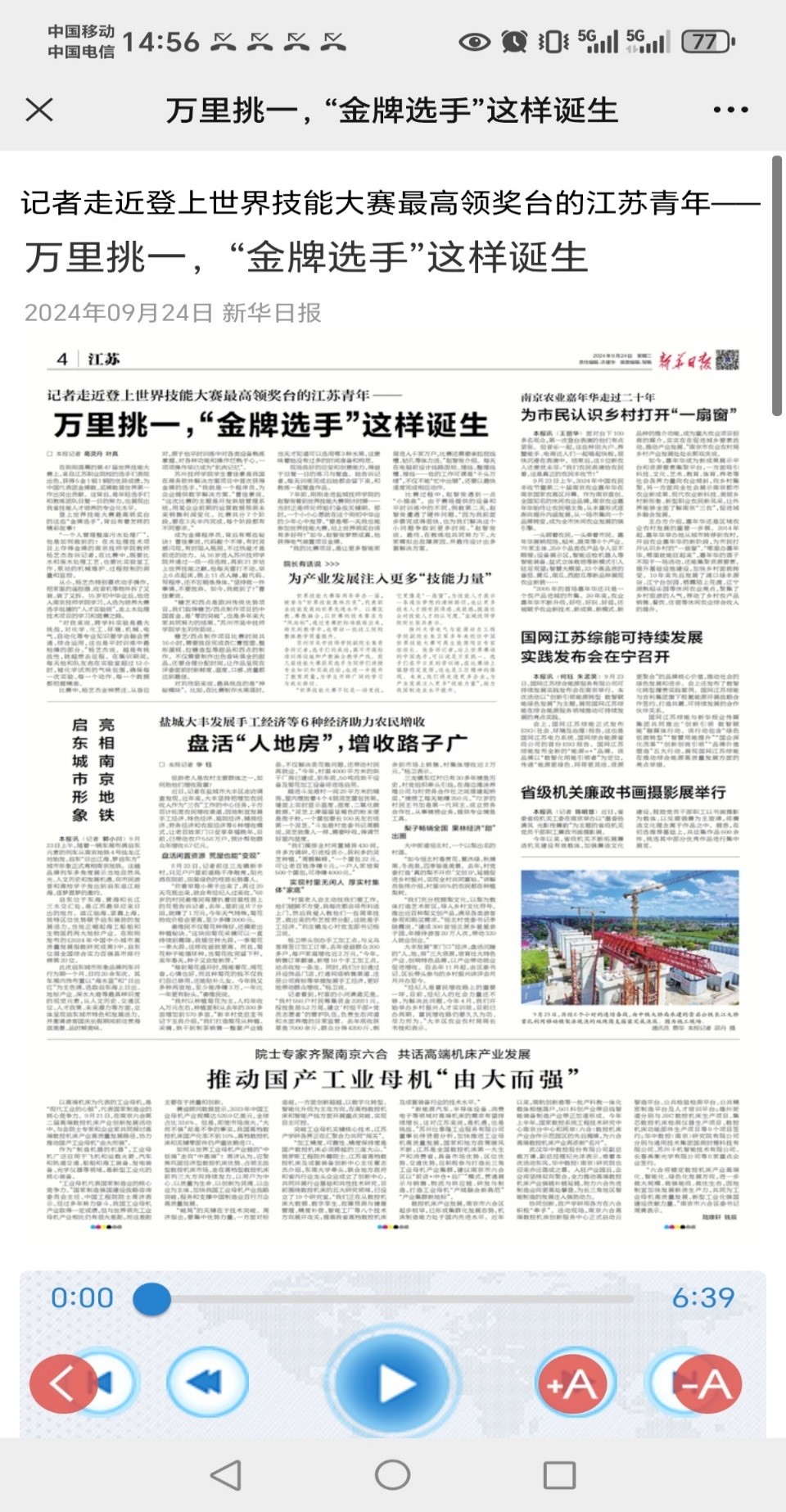 《新华日报》记者走近登上世界技能大赛最高领奖台的江苏青年——万里挑一,“金牌选手”这样诞生