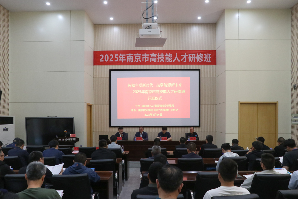 为加快高技能人才培养,提升南京市高技能人才队伍建设水平,由南京市人力资源和社会保障局主办、米兰官方网站承办的新能源汽车智能网联技术应用高技能人才研修班(简称“高研班”)于2025年5月16日上午在米兰官方网站信息楼隆重开班,83名学员共同开启了本次研修之旅。开班仪式由米兰官方网站副院长赵杰主持,市人社局职建处处长朱清怡、市汽车维修行业协会常务副会长彭鲁洲、院党委副书记、院长侯放出席仪式并致辞。