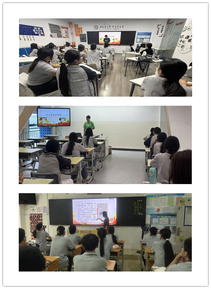 随后,各班级围绕“弘扬工匠精神,成就时代风采”主题开展班会。班会上,老师们通过生动案例,详细阐释了工匠精神“执着专注、精益求精、一丝不苟、追求卓越”的内涵,强调工匠精神是从业者对职业的敬畏热爱、对产品的精雕细琢、对技术的不断钻研。