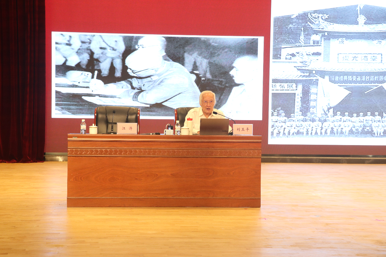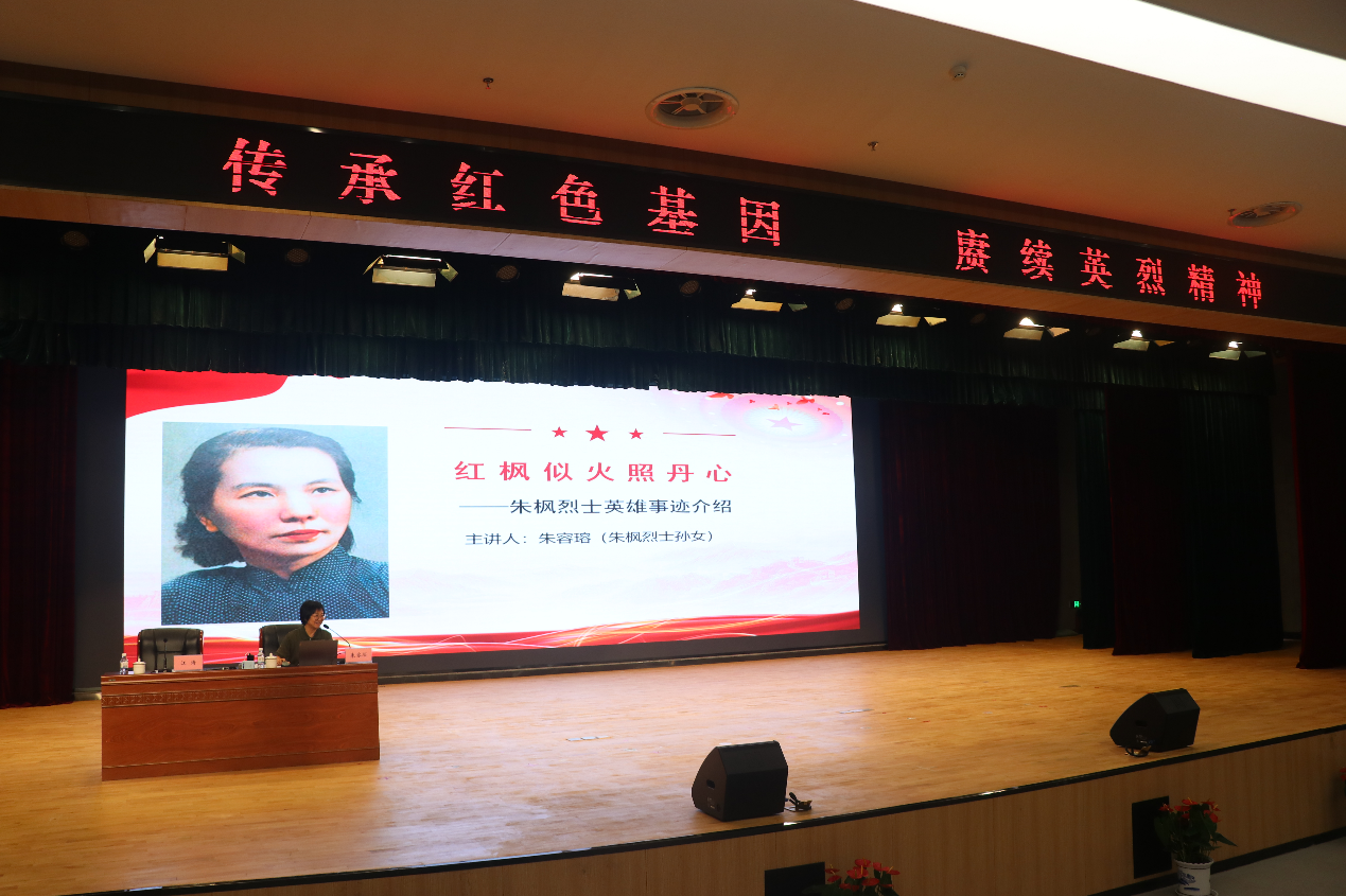 会上,刘玉平教授通过大量史料和图片展示了父亲刘光典受党的委派在台湾进行隐蔽战线斗争,为完成祖国统一大业,牢记使命、坚守信仰、不畏牺牲的英勇事迹。朱容瑢女士通过声情并茂的讲述,展现了祖母朱枫烈士在战火纷飞年代坚定投身革命、坚贞不屈、视死如归的崇高气节。通过宣讲,大家深切地感受到革命先辈在面临生死考验时展现出的坚如磐石的信仰、视死如归的忠诚和百折不挠的意志,深刻理解了共产党人矢志不渝的初心使命。